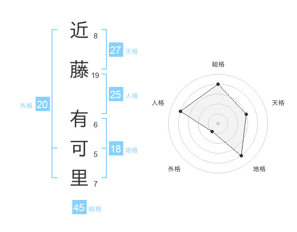 近藤 有可里さんを姓名の画数から五運を鑑定