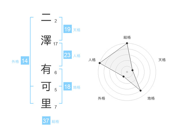 二澤 有可里さんの総格は37画の5点!