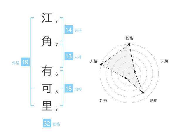 江角 有可里さんの総格は32画の5点!