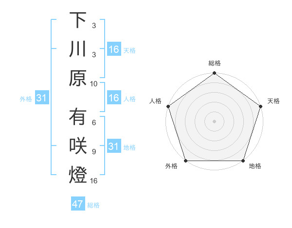 下川原 有咲燈さんを姓名の画数から五運を鑑定