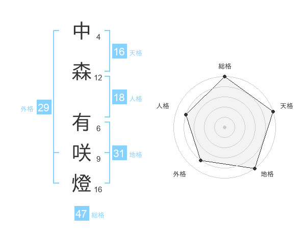 中森 有咲燈さんを姓名の画数から五運を鑑定