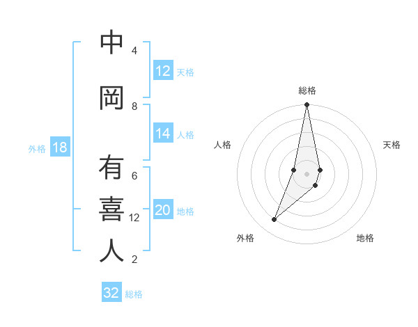 中岡 有喜人さんを姓名の画数から五運を鑑定