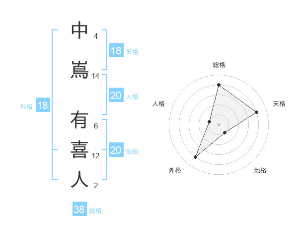 中嶌 有喜人さんを姓名の画数から五運を鑑定