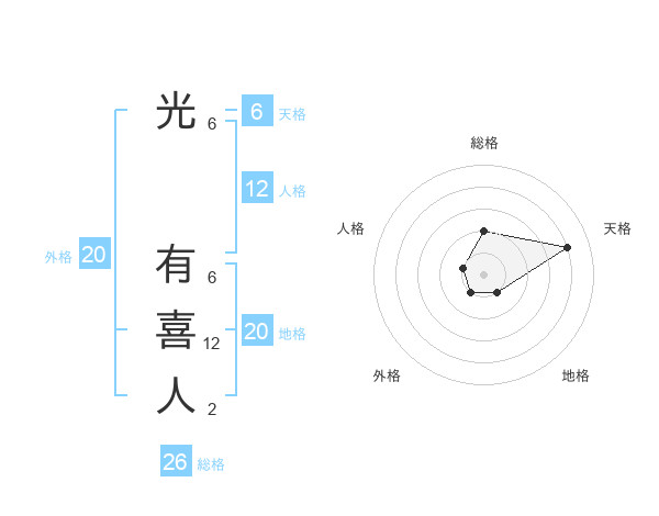 光 有喜人さんの総格は26画の2点!