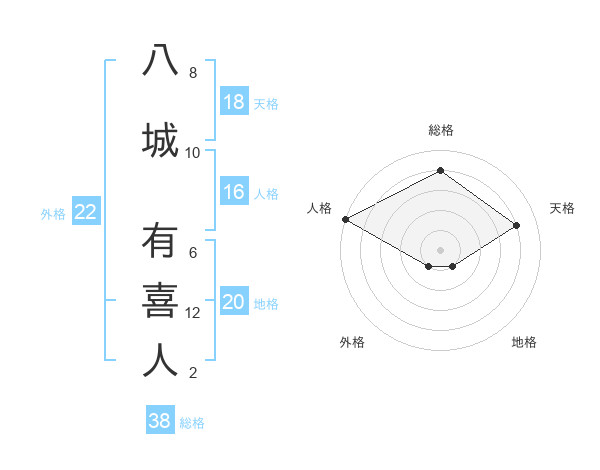 八城 有喜人さんの総格は38画の4点!