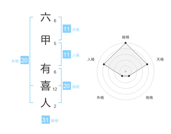 六甲 有喜人さんの総格は31画の5点!
