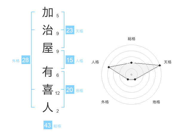 加治屋 有喜人さんを姓名の画数から五運を鑑定