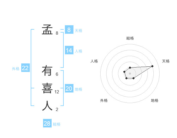 孟 有喜人さんを姓名の画数から五運を鑑定