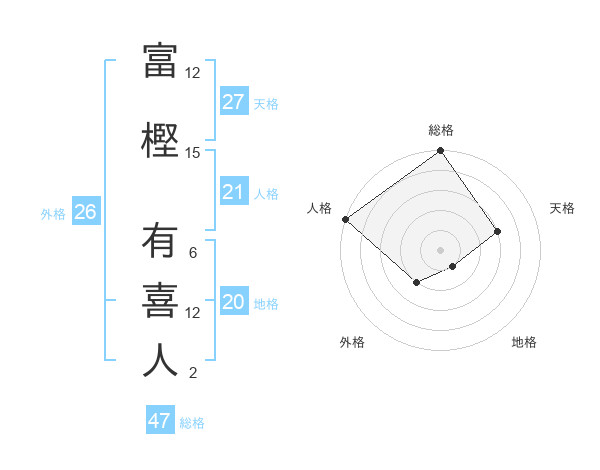 富樫 有喜人さんを姓名の画数から五運を鑑定