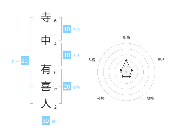 寺中 有喜人さんの総格は30画の2点!