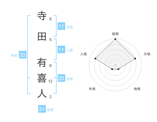 寺田 有喜人さんを姓名の画数から五運を鑑定