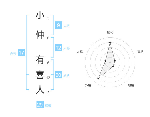 小仲 有喜人さんの総格は29画の4点!