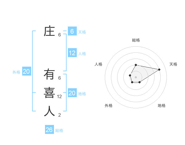 庄 有喜人さんの総格は26画の2点!