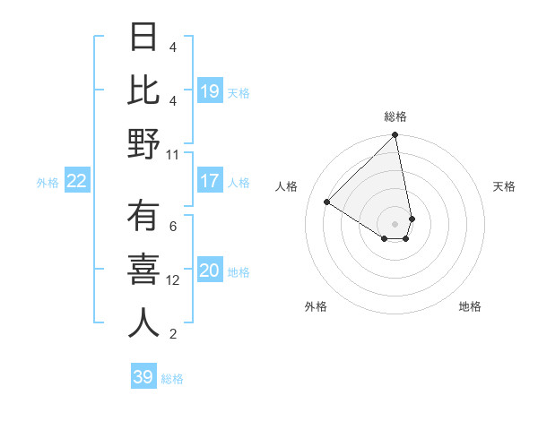 日比野 有喜人さんの総格は39画の5点!