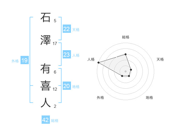 石澤 有喜人さんを姓名の画数から五運を鑑定