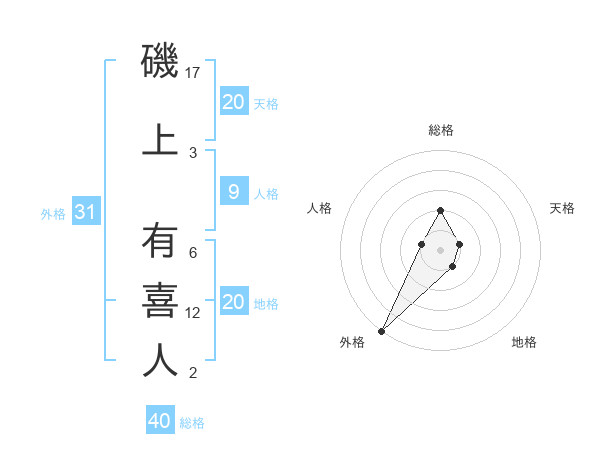 磯上 有喜人さんを姓名の画数から五運を鑑定
