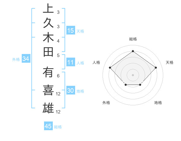 上久木田 有喜雄さんを姓名の画数から五運を鑑定
