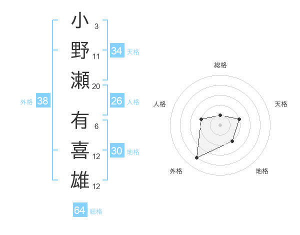 小野瀬 有喜雄さんの外格は38画の4点
