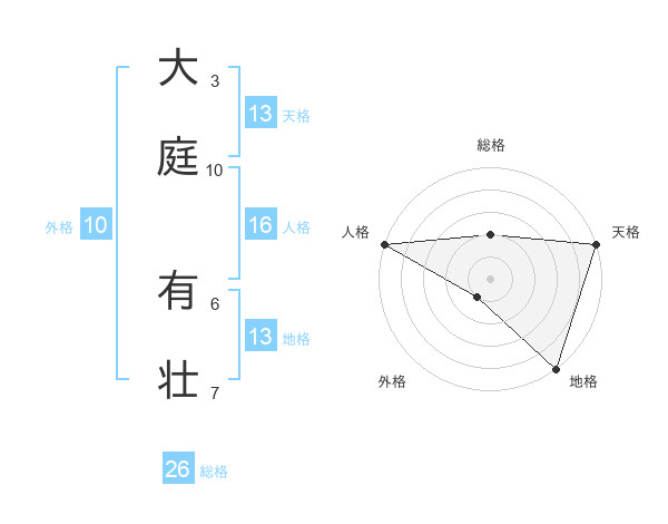 大庭 有壮さんを姓名の画数から五運を鑑定