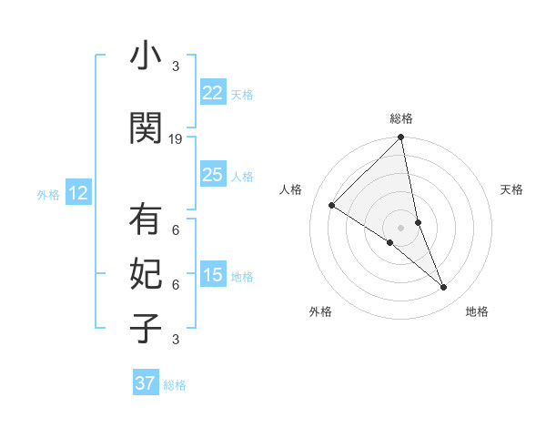 小関 有妃子さんを姓名の画数から五運を鑑定