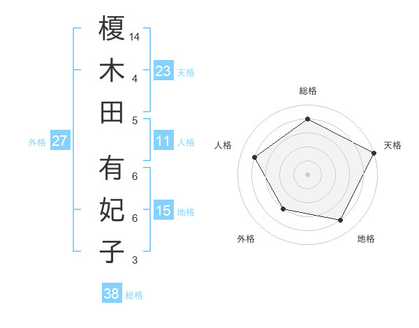 榎木田 有妃子さんを姓名の画数から五運を鑑定