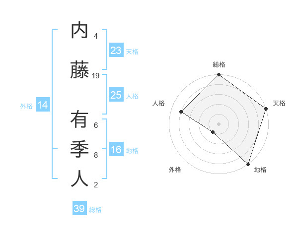 内藤 有季人さんを姓名の画数から五運を鑑定