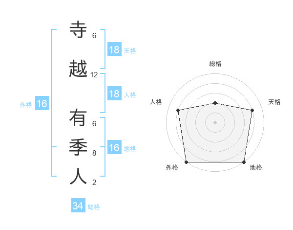 寺越 有季人さんの外格は16画の5点!