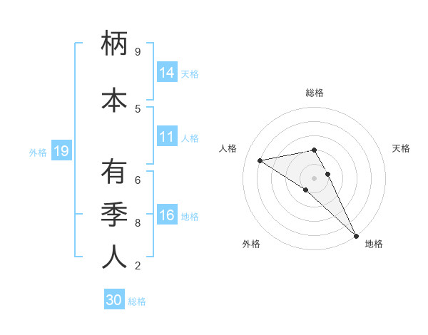 柄本 有季人さんを姓名の画数から五運を鑑定