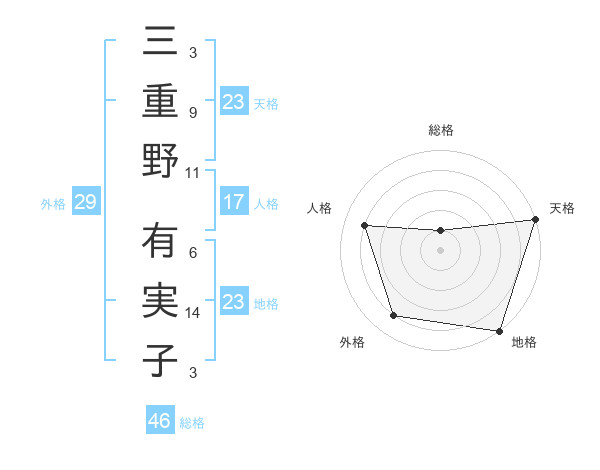 三重野 有実子さんを姓名の画数から五運を鑑定