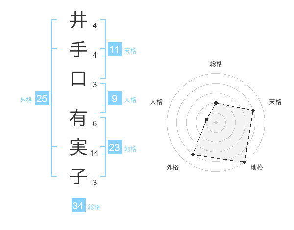 井手口 有実子さんを姓名の画数から五運を鑑定