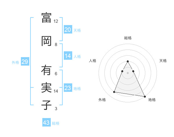 富岡 有実子さんを姓名の画数から五運を鑑定