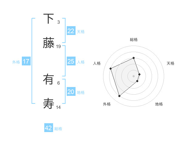 下藤 有寿さんを姓名の画数から五運を鑑定