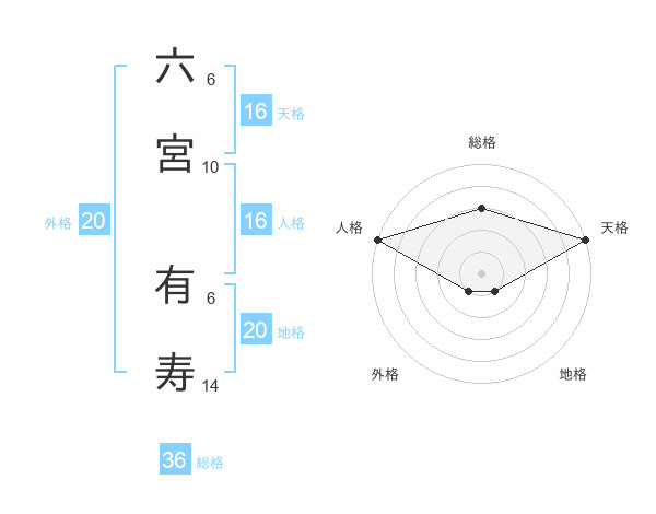 六宮 有寿さんを姓名の画数から五運を鑑定