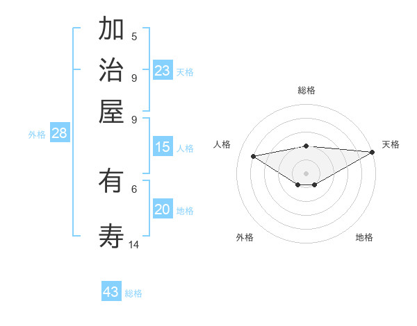 加治屋 有寿さんの天格は23画の5点
