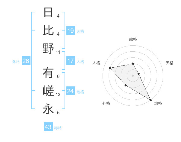 日比野 有嵯永さんを姓名の画数から五運を鑑定