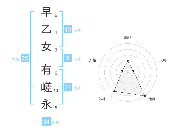 早乙女 有嵯永さんを姓名の画数から五運を鑑定