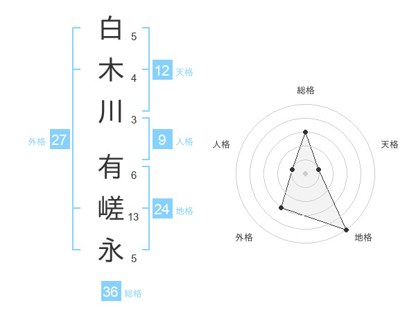 白木川 有嵯永さんを姓名の画数から五運を鑑定