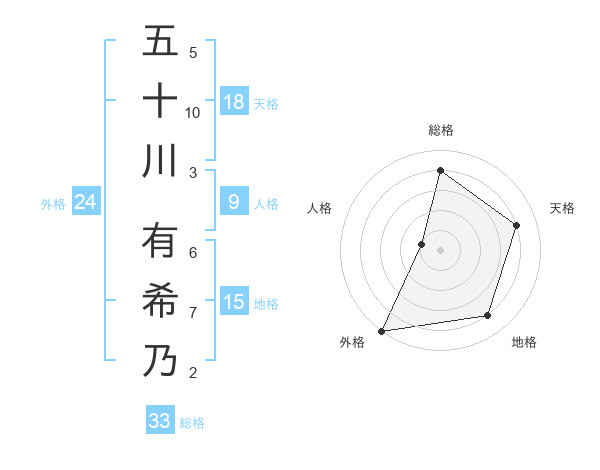 五十川 有希乃さんを姓名の画数から五運を鑑定