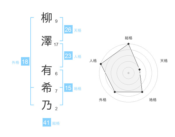 柳澤 有希乃さんを姓名の画数から五運を鑑定