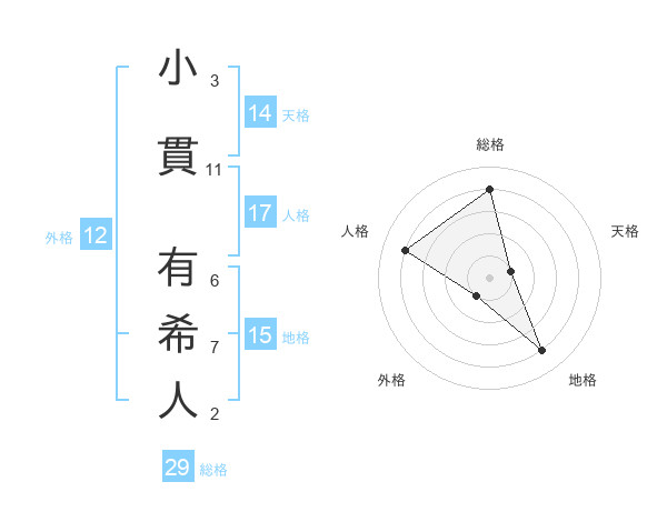 小貫 有希人さんを姓名の画数から五運を鑑定