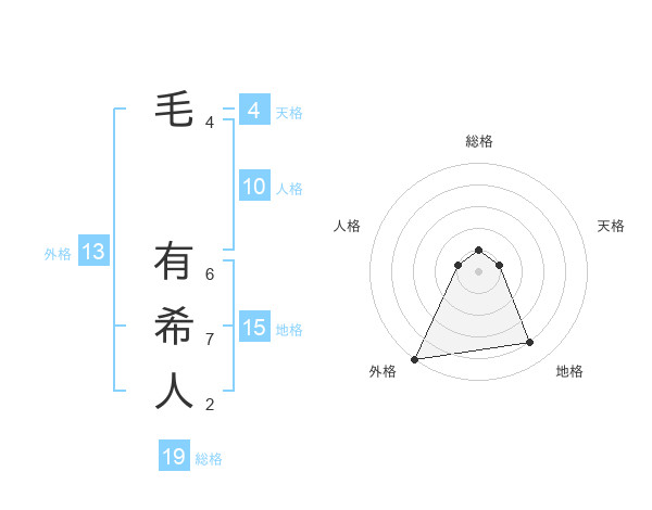 毛 有希人さんの外格は13画の5点!