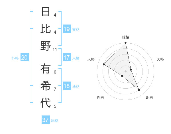 日比野 有希代さんを姓名の画数から五運を鑑定