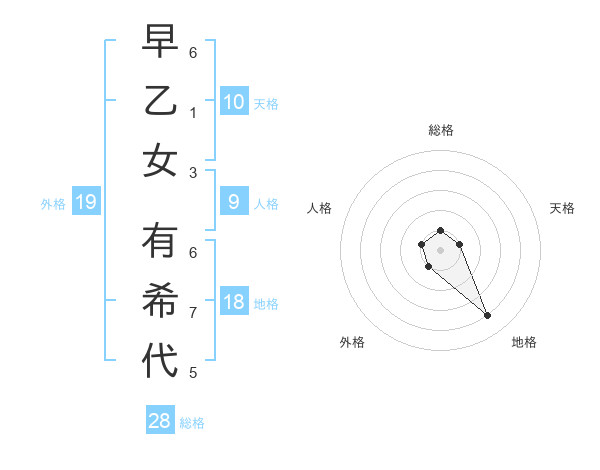早乙女 有希代さんを姓名の画数から五運を鑑定