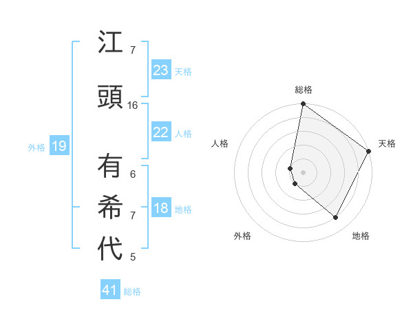 江頭 有希代さんを姓名の画数から五運を鑑定