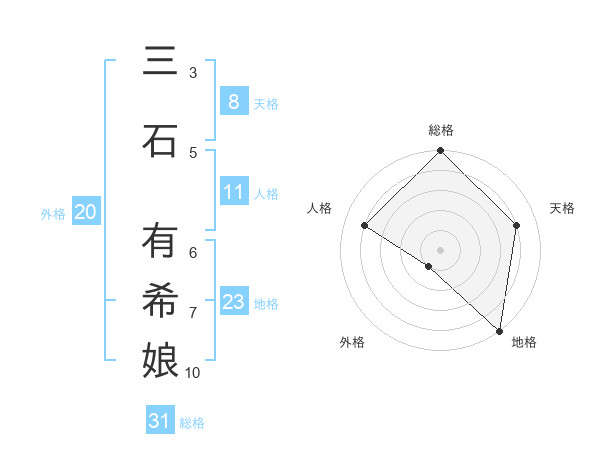 三石 有希娘さんの総格は31画の5点!