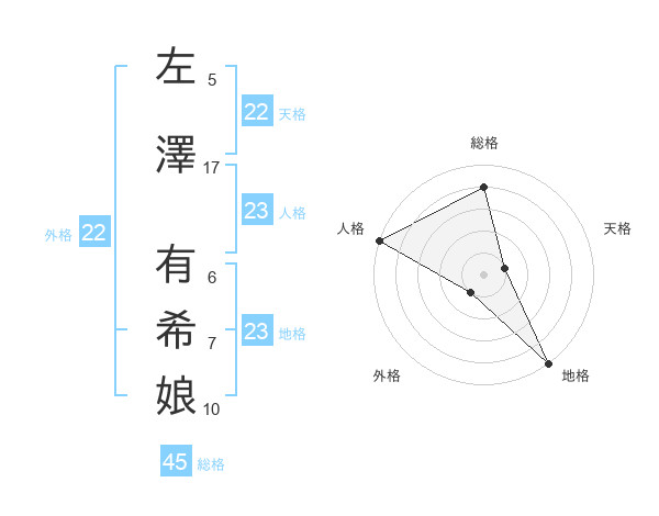 左澤 有希娘さんを姓名の画数から五運を鑑定