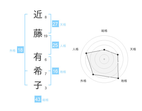 近藤 有希子さんを姓名の画数から五運を鑑定