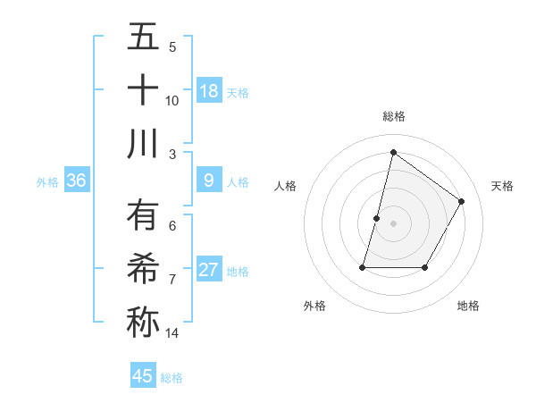 五十川 有希称さんの総格は45画の4点!
