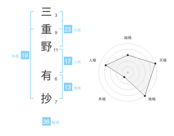 三重野 有抄さんを姓名の画数から五運を鑑定