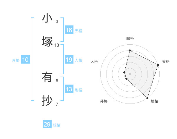 小塚 有抄さんを姓名の画数から五運を鑑定